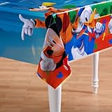 Each Plastic Mickey's Clubhouse Tablecover measures 54" x 102". Tablecover features a blue background with Mickey, Goofy and Donald along the edges.Mickey's Clubhouse Tablecover